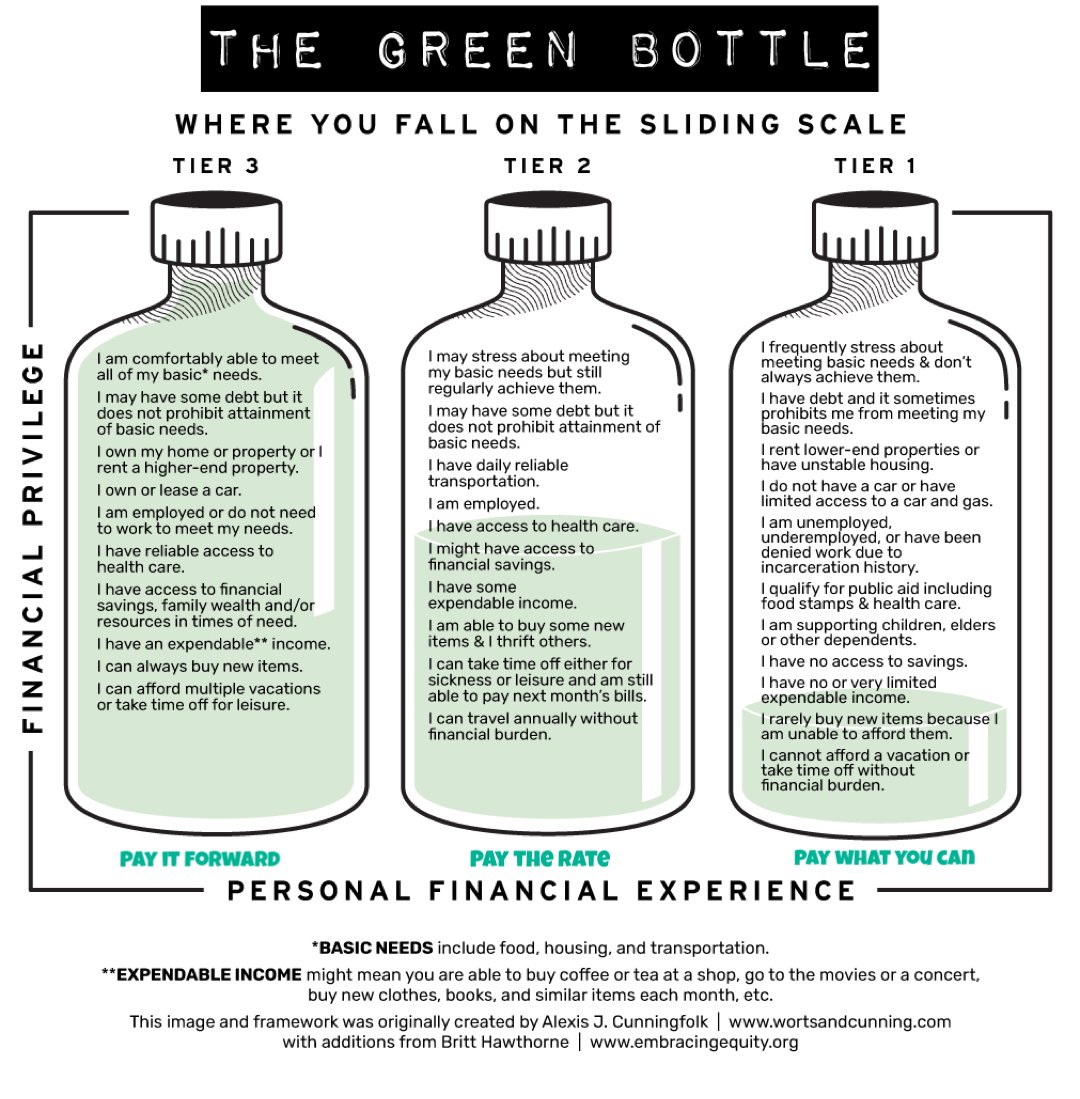 We offer a sliding scale based on need. We use the Green Bottle Method and an honor system and ask that those that can do more, help us to reach others who are in true need. Please do not let finances keep you from getting the help you need; reach out to us if you feel you have additional needs.